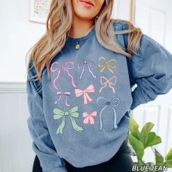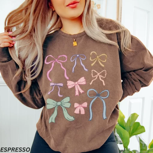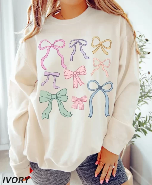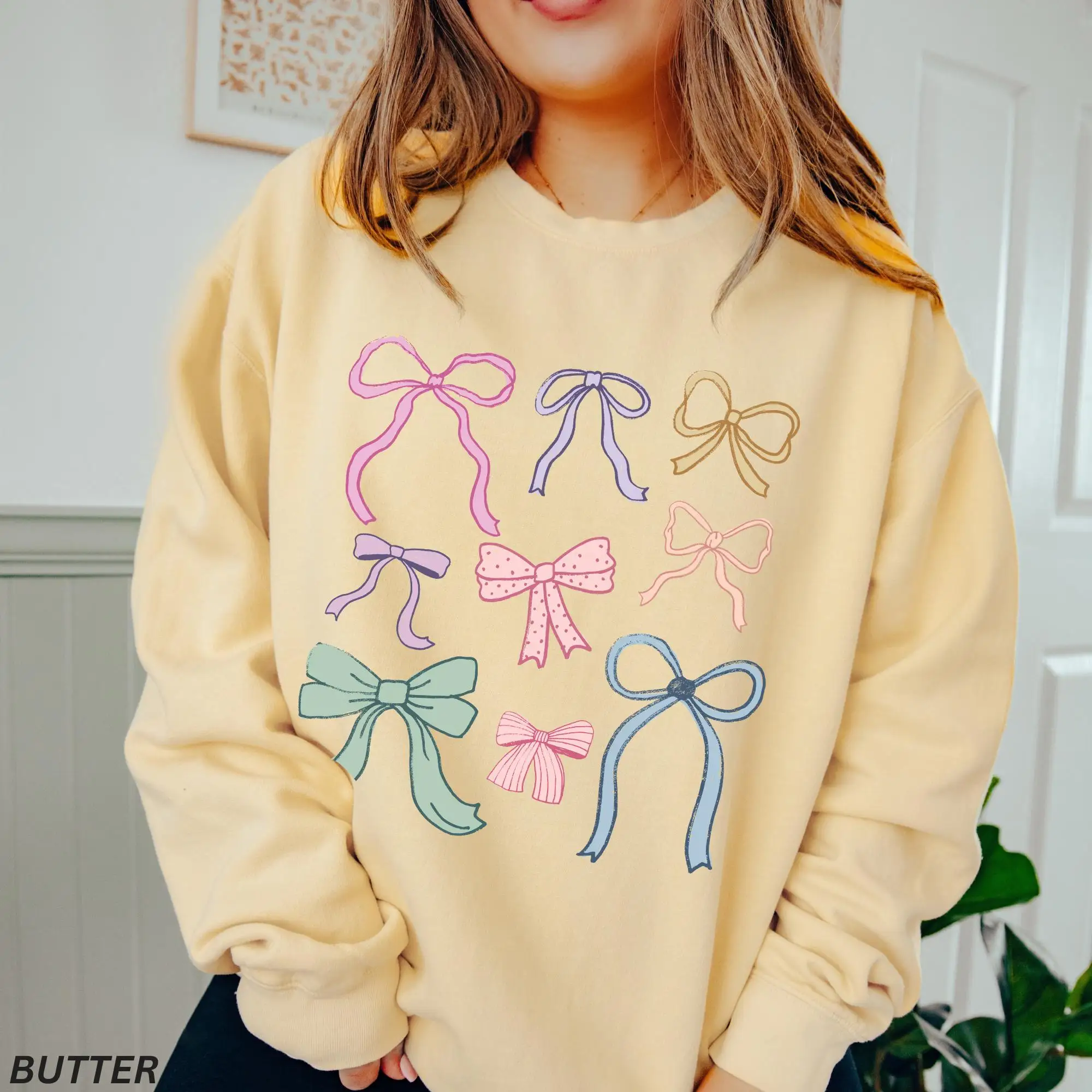 Women Sweatshirt, Long Sleeve Crew Neck Bowknot Print Hoodie Pullover Casual Tops