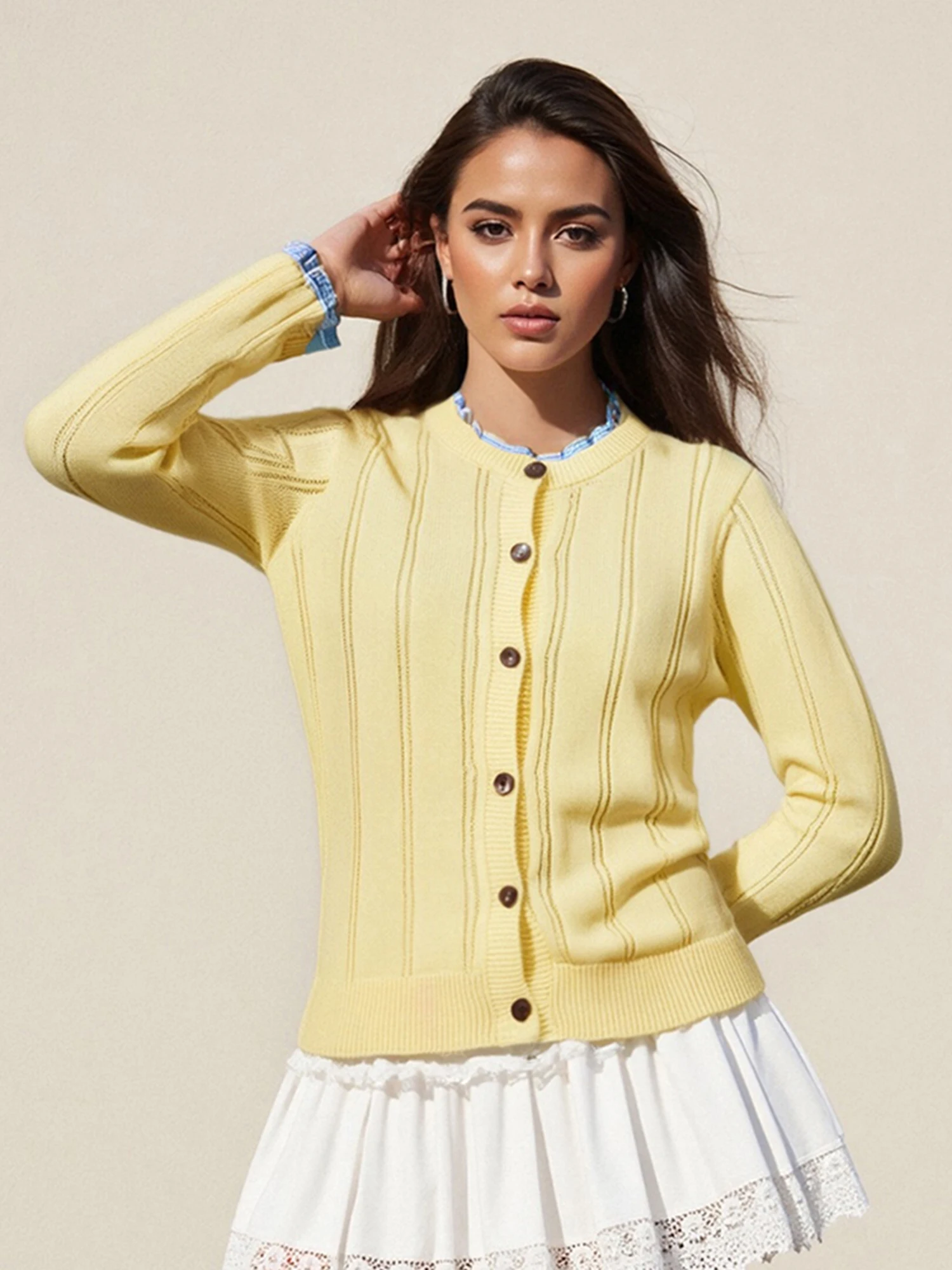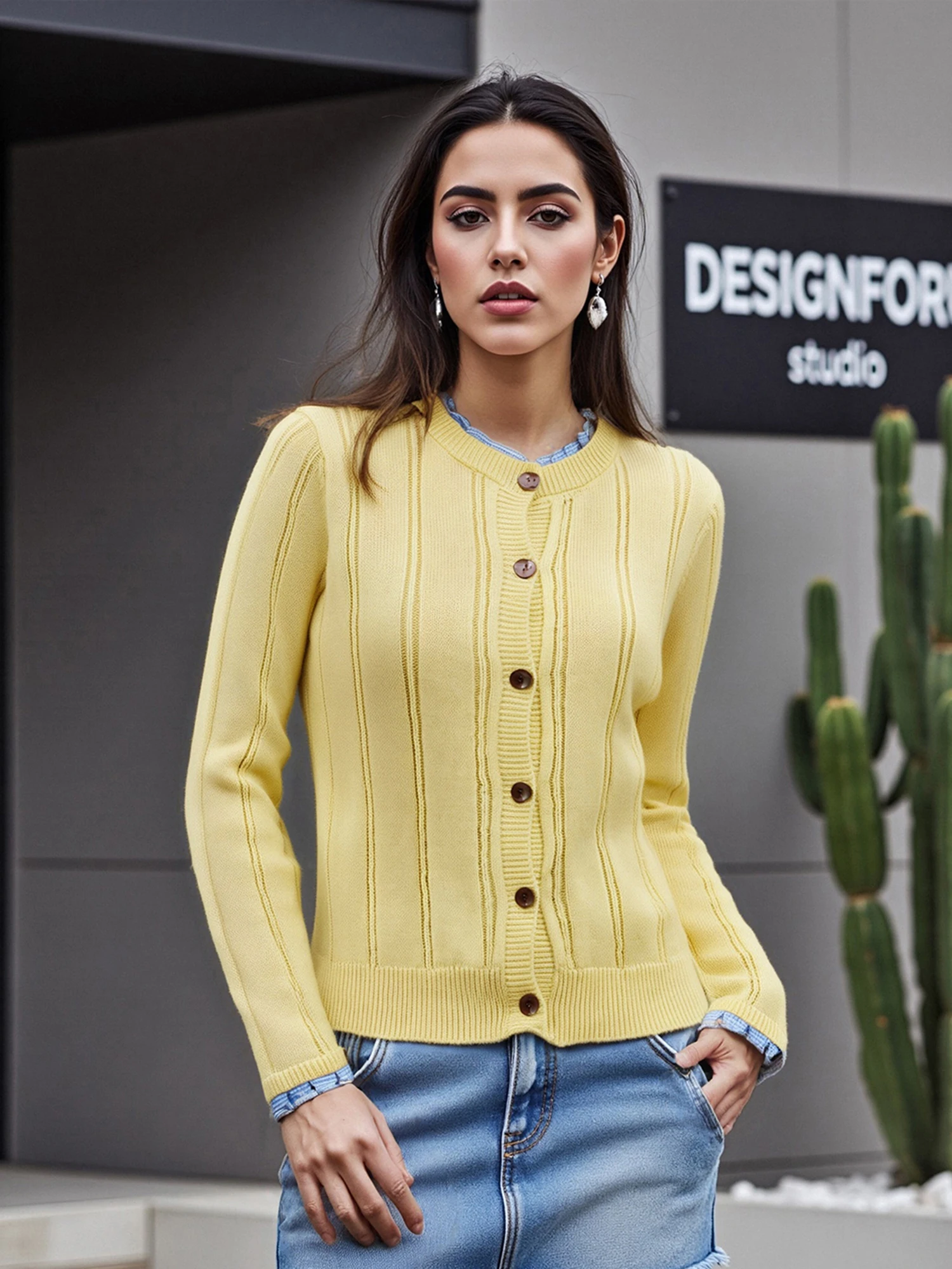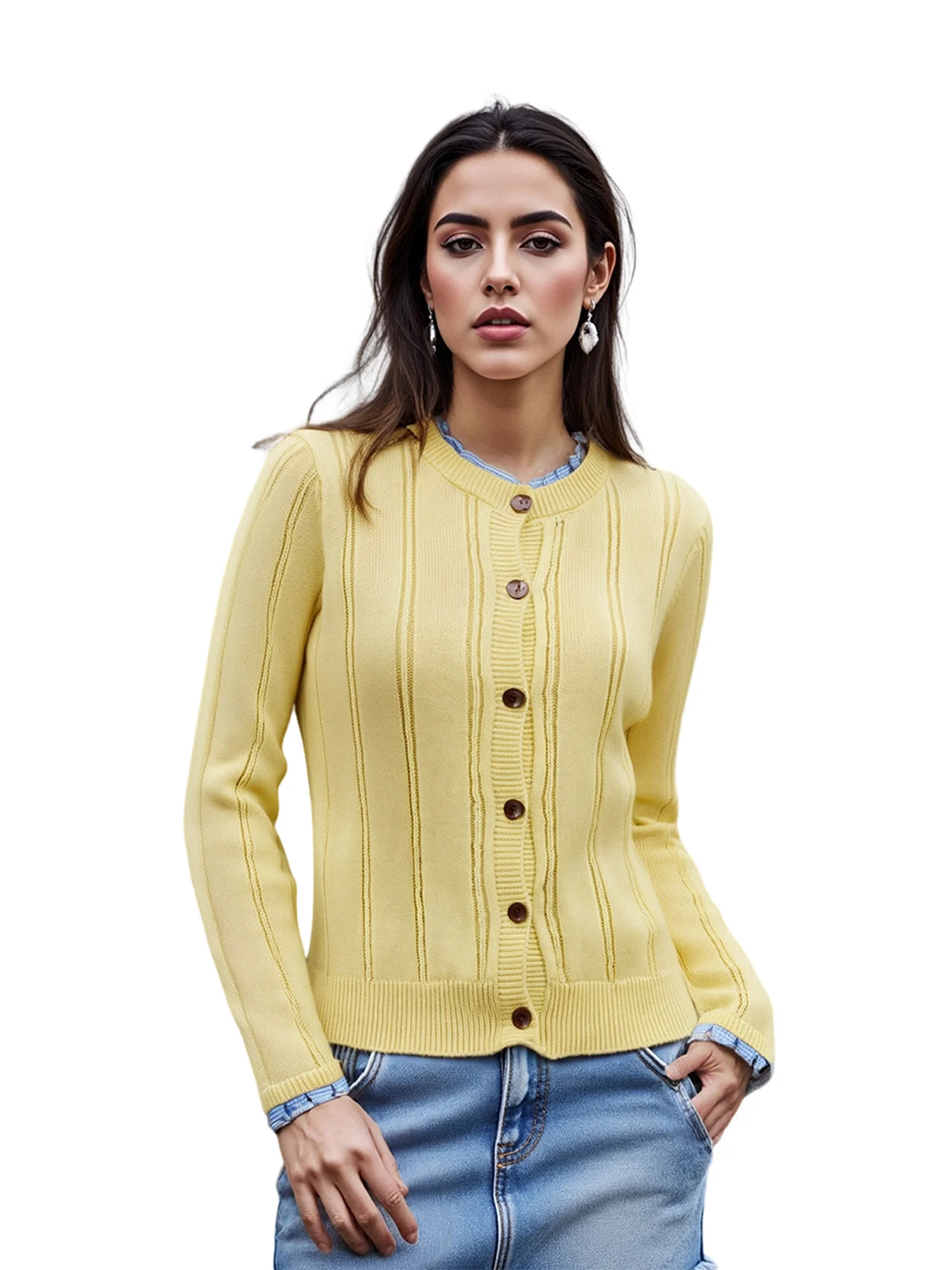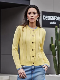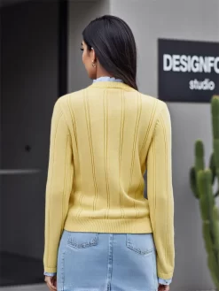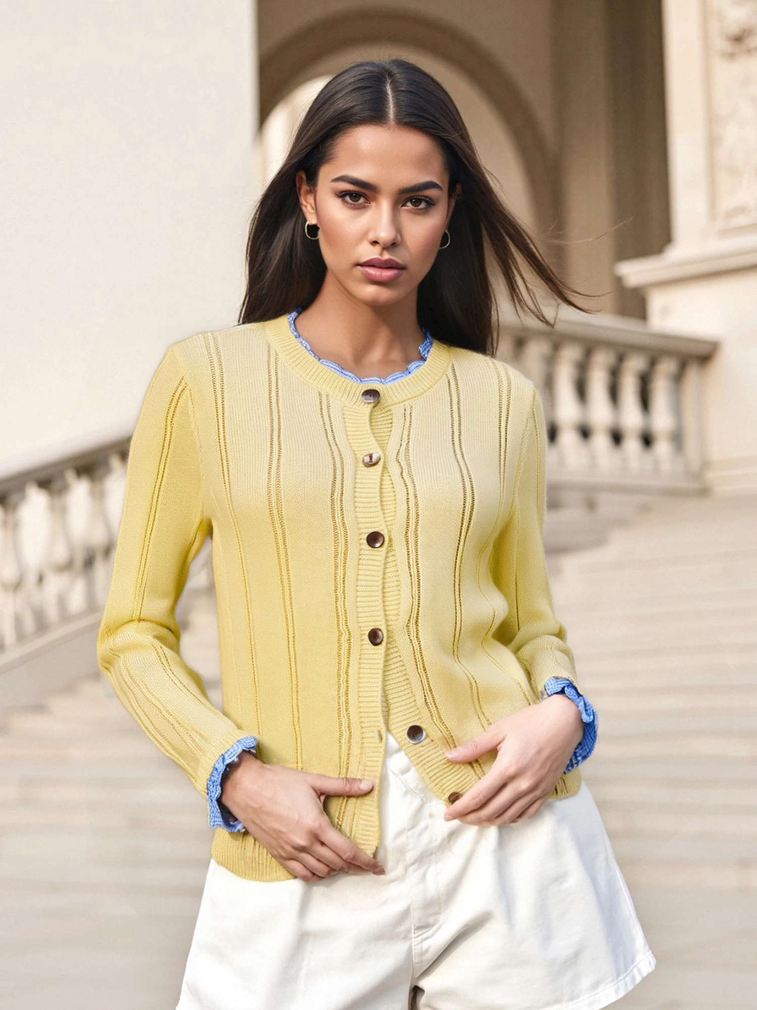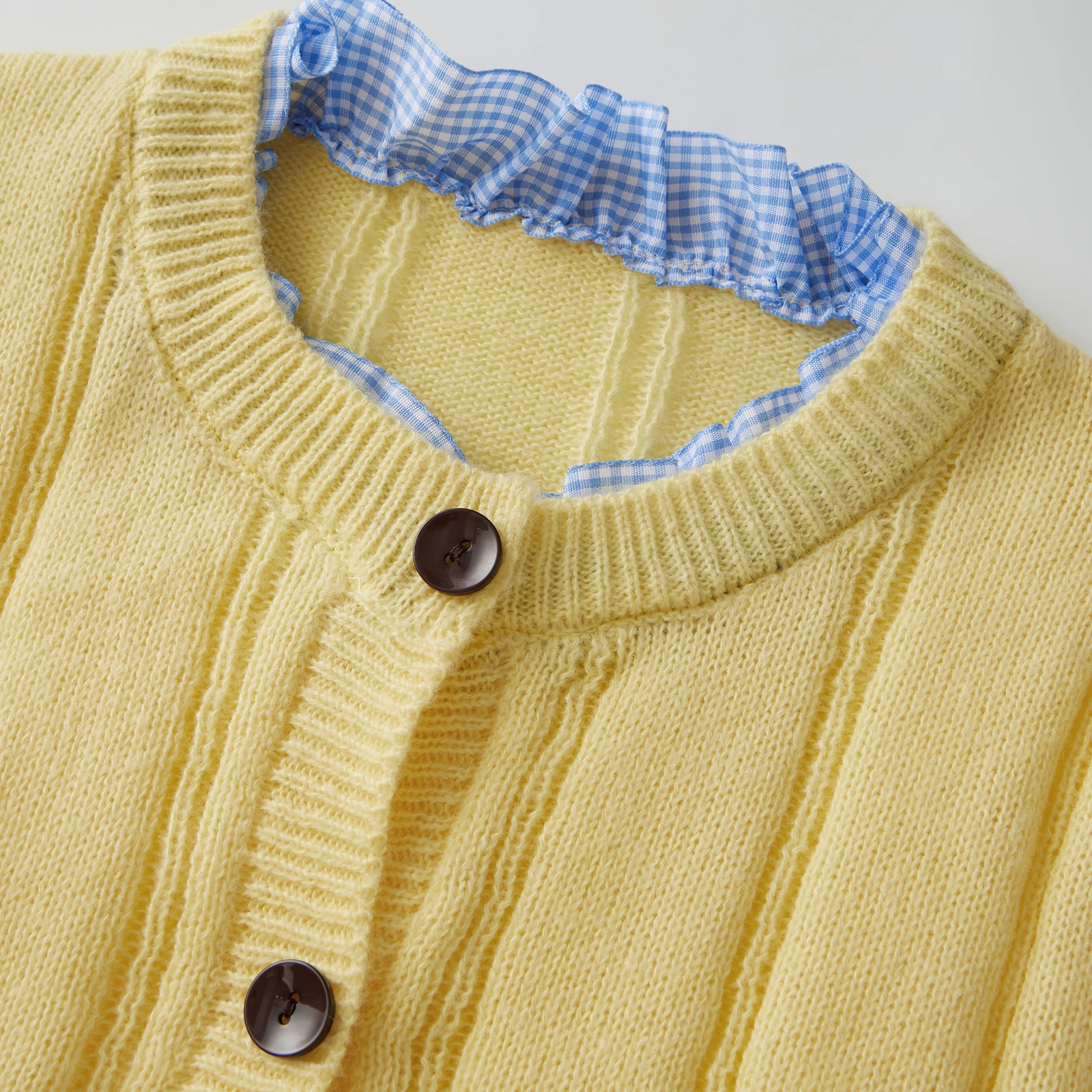 Women’s Fall Knit Cardigan Plaid Print Neckline Patchwork Long Sleeve Button Down Sweater Jacket for Spring, Fall